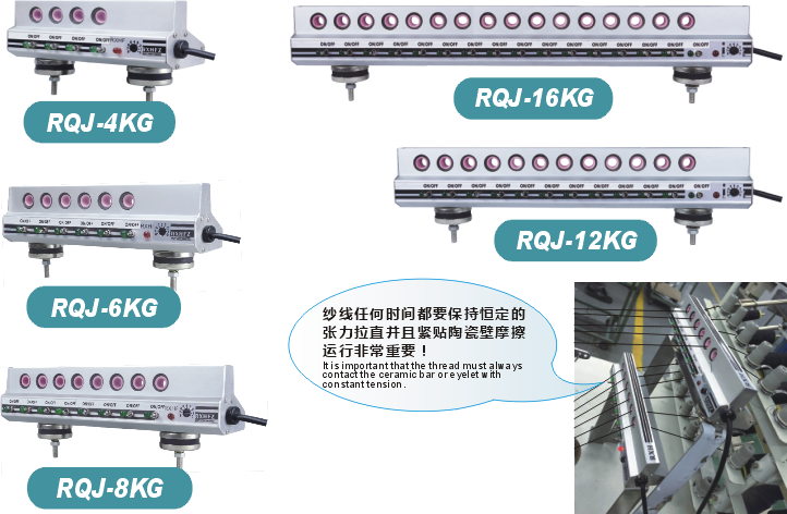 通用断线检测器,在压电原理中运行,用于监测纱线的运动。这样的工作原理使它能适用于所有种类的纱线,并且对灰尘、污垢和湿度的变化而不影响其灵敏度。